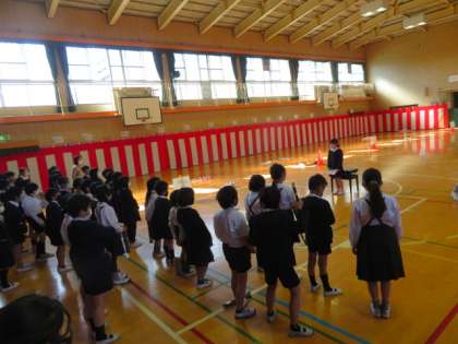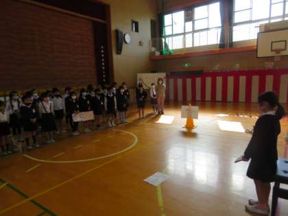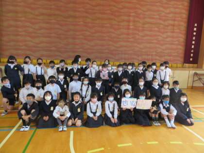 転校する児童からみんなへのあいさつがあり、さらに3年生のみんなからのプレゼント、そして最後に集合して記念写真を撮りました。