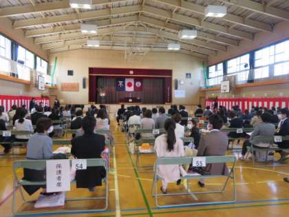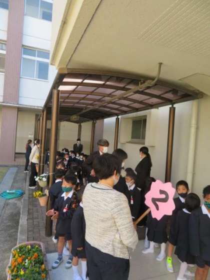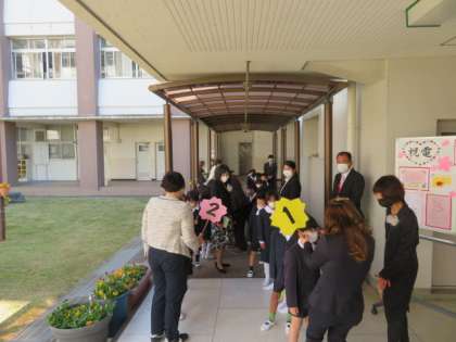 1・2組に分かれて式場前まで、子どもたちが来ました。