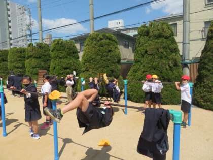 令和3年度も、「一日一回、玉の汗」ということで、晴れの日は一日に最低一回でも運動場に出て運動遊びをする子どもが増えるように取り組んでいきます。