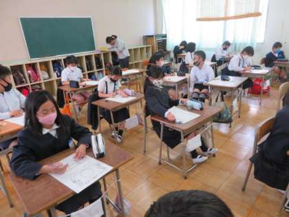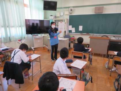 5年2組では、今年の目標や自己紹介のプリントに書きこんでいました。