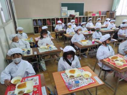 4/13 火 給食時間 1年生の給食