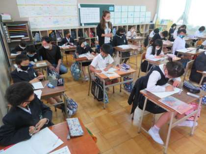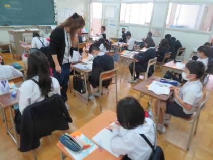 4年生は、図形の角度の測り方を学習していました。