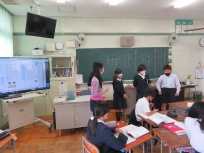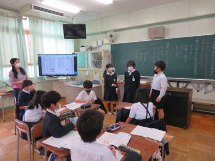「この言葉、あなたならどう考える」という学習で、たずねたり、反応を返したりしながら対話で考えを広げようというめあてで学習を進めていました。