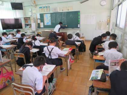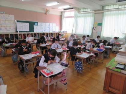 1組も2組も、都道府県の名前等を白地図に書き込み、地域ごとに色を塗り分けていました。
