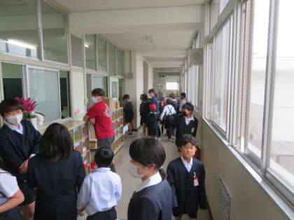 6年生が、担当の班の1年生を迎えに行き、各町別の教室に集まります。