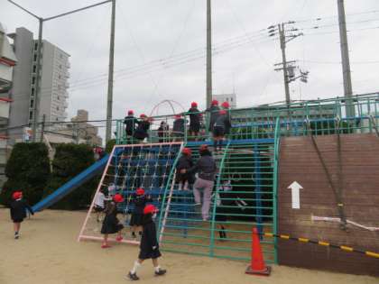 1年生は、コンビネーション遊具で遊ぶ子どもがほとんどです。