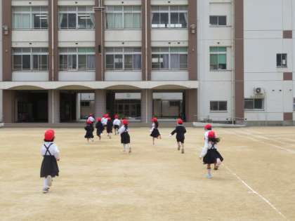 休み時間が終わりのチャイムが鳴ると、一斉に校舎の方へ向かって駆けていきました。