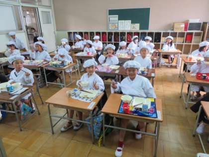 じゃこピーマンの食べ具合はどうかなと心配して1年生の教室をのぞきましたが、杞憂でした。