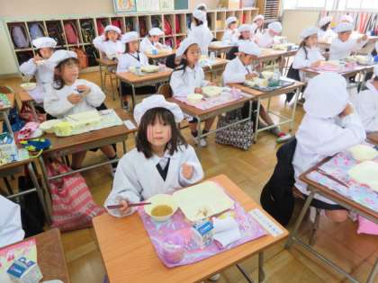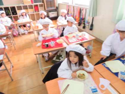 すでにほとんどの児童が食べ終えており、じゃこピーマンはごはんと混ぜておいしくいただいたということでした。