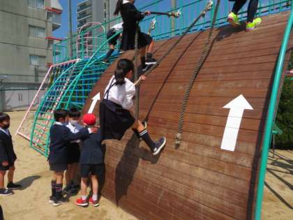 この遊びは、登り専用なので上向きの矢印を描きこみました。