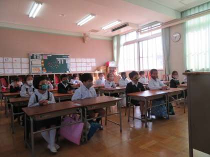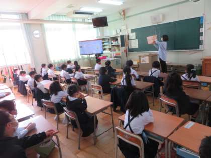 4/21 水 朝の時間  朝の読み聞かせ 1年2組