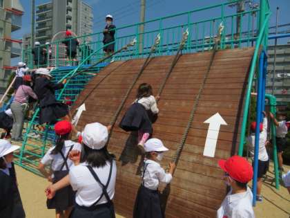 コンビネーション遊具は、いつも子どもたちに人気があります。