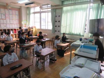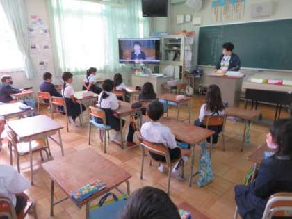 各教室では、鮮明な映像で、一人ひとりのあいさつが映されていました。