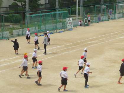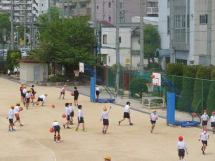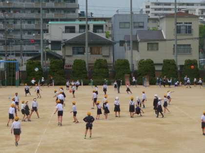 今日も天気が良く、多くの子どもたちが運動場で元気いっぱい運動遊びを楽しんでいます。