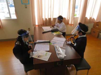 リコーダーの吹奏で、リコーダーの副読本にある練習曲にチャレンジしていました。