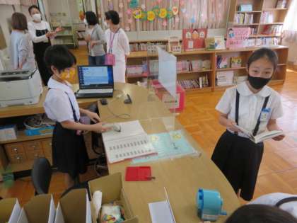 お気に入りの本を見つけて、貸し出し手続きをしている子どもがいました。