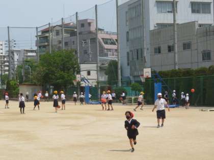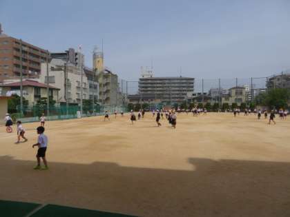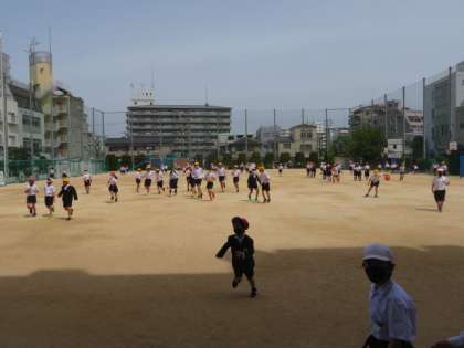 休み時間終了のチャイムが鳴るや否や、運動場で遊んでいた大勢の子どもたちが一斉にピロティに向かって走ってきました。