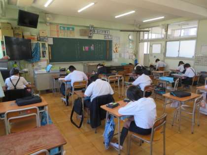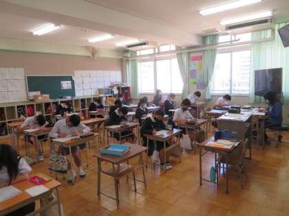 分散登校の形になっているので、それぞれの児童の出席状況の確認や健康観察をしてからプリント学習を主体に1・2時間目の活動を行います。