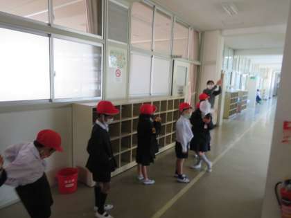 1年生は、運動場等で遊んでいた子どもたちをまとめて、教室に入るまでに手洗い・消毒指導を徹底しています。