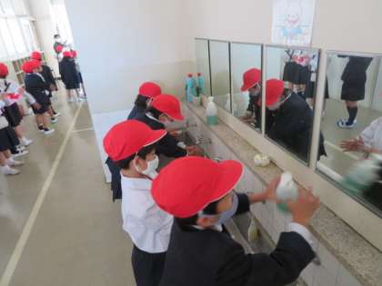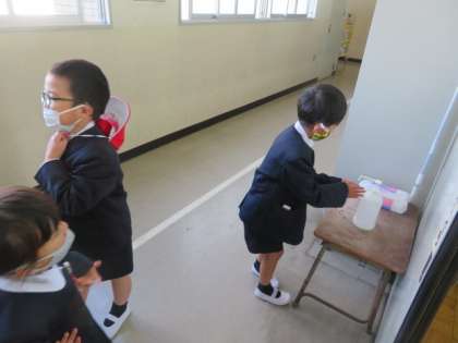 4/26 月 9:40 休み時間後の手洗い・消毒