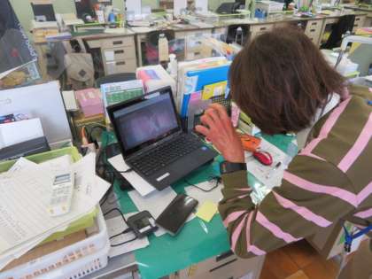 在宅児童の一人一台端末のポータブルパソコンと職員室のパソコンで、teamsの接続テストをしたところ無事につながりました。