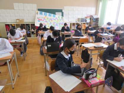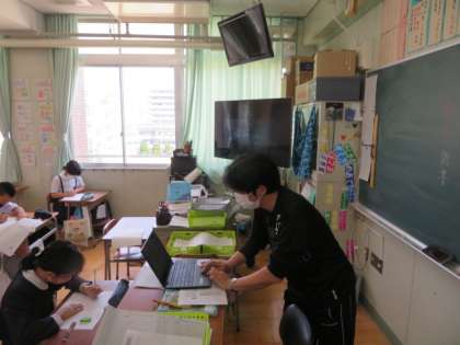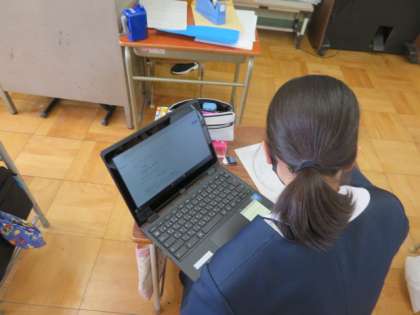 一人一台端末でインターネットにつないでいろいろなことを調べたり、事前にteamsがつながるかの接続テストを行っていたりしていました。