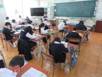 学級によっては、学習内容の確認をしたり、もくもくとプリントの課題にチャレンジしたりしていました。