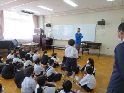 前回は、マーク先生の自己紹介が主の学習だったので、今回は子どもたちが英語で自己紹介をするという内容でした。
