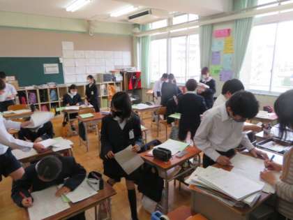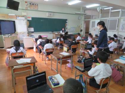 各学級では、プリントを使っての学習を進めながらも、10時10分からの在宅している児童とのTeams接続テストに備えていました。