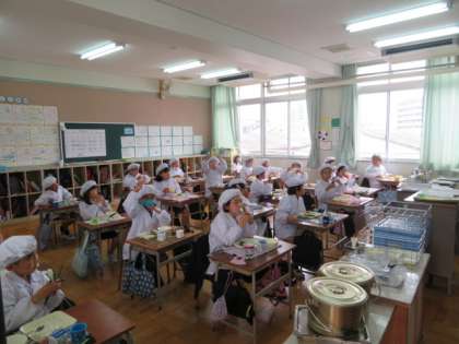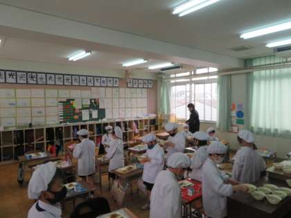 整然と配食し、マナーを守って、おいしく給食をいただいています。