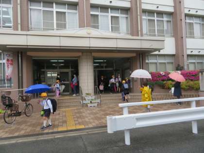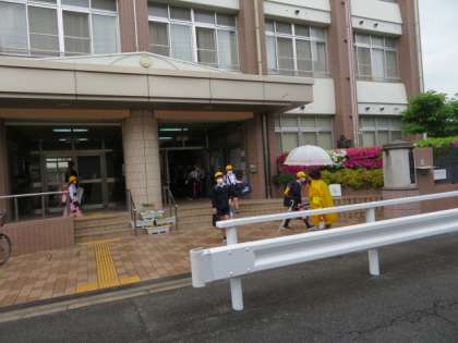 水曜日は、ボランティアの見守りの方が黄色いレインコートを着用し、子どもたちの安全な下校を見守っていただいています。