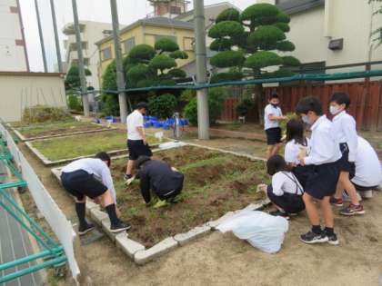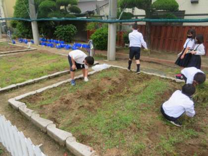 先日来各学年で、それぞれに割り当てられた学習園を整備しているところです。