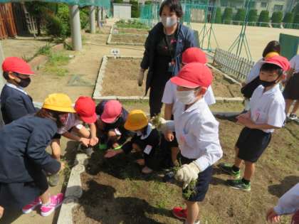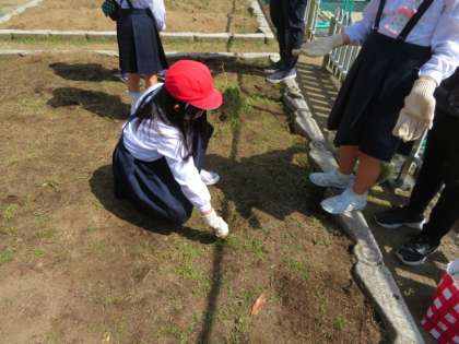 2年1組の子どもたちが、この時間に雑草抜きをしていました。