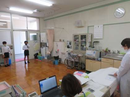 他の学年と同じように登校してきている児童から分散して検査を行っています。