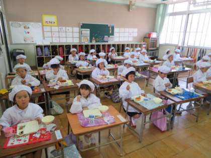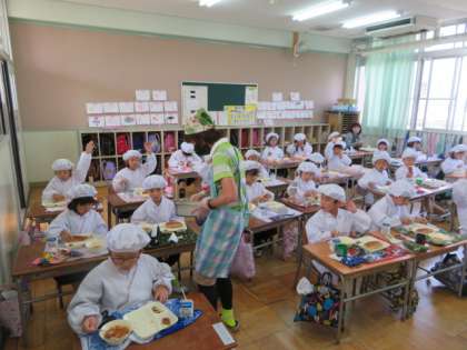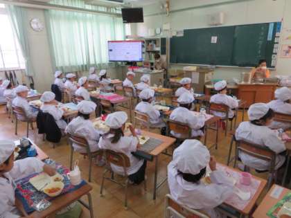 静かにマナーを守って、しっかりと給食をいただいていました。