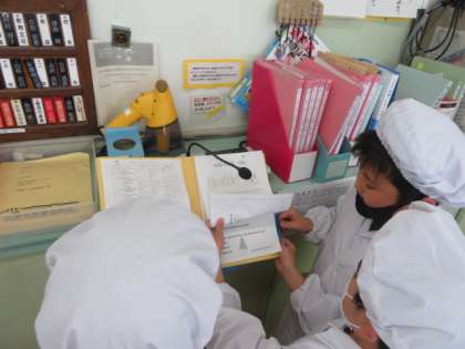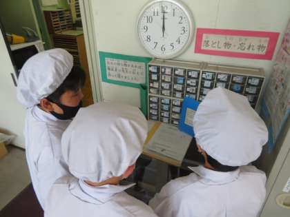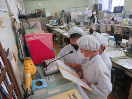 その日の給食委員会給食放送担当児童が、事前に練習をしてから、しっかりと給食放送を行っています。