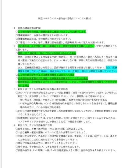 なお、新型コロナウイルス感染拡大予防の諸対策につきまして、引き続きご理解とご協力をいただきますようよろしくお願い申しあげます。