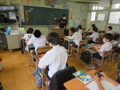6年1組の教室でも、子どもたちが算数の学習に集中していました。