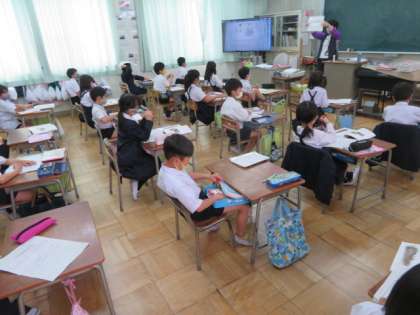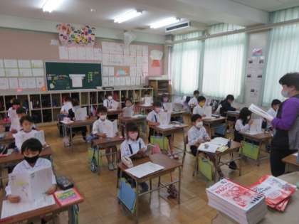 2年1組では、教科書を音読したりして、国語の学習が進んでいました。