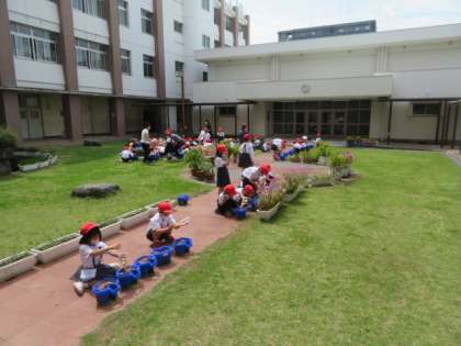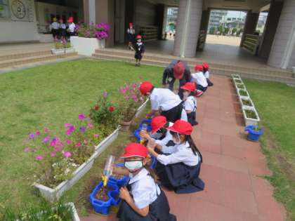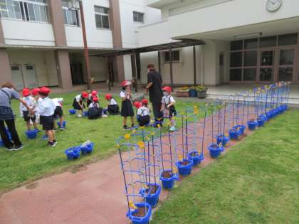 5/18 火 2時間目 1年生 アサガオの鉢植え 2