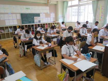 「友だちの意見を聞いて考えよう」で、他の人の意見と自分の意見を比較して自分の考えをまとめようをめあてに学習が進んでいました。