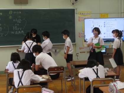 ふくざつな小数のかけ算をしようをめあてに学年3分割の習熟度別少人数学習で、それぞれ問題にチャレンジしていました。