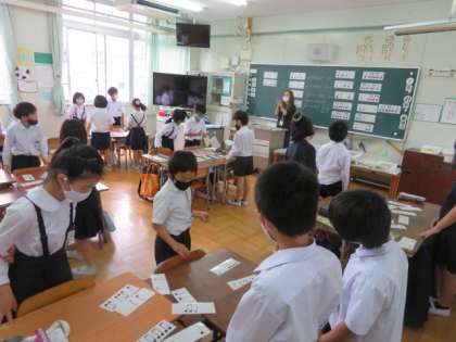 各音符の長さやリズムなどを表したカードを使い、担任が手拍子でリズム打ちをしてカードを見つける活動を楽しくしていました。