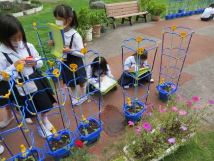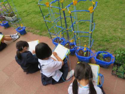 アサガオの観察をしていました。