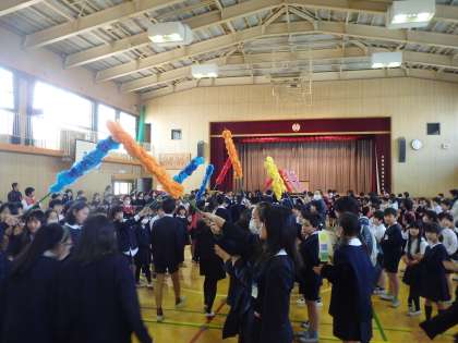 6年生をお祝いする会がありました。これで、全員が集って遊ぶ取り組みは最後です。各クラスが作ったメッセージを大きな声で言った後、「6年生に関するクイズ」がありました。6年生は教科では、体育が一番人気で、音楽が二番目とのこと。そして給食では、冷凍みかんが人気でした。また、一番の思い出は、修学旅行で、二番目の思い出は学習発表会でした。そして、じゃんけんゲーム、先生たちも入り、とても盛り上がりました。握手をしたり、ハグをしたりしてる子も。いよいよクライマックスは、6年の音楽合奏「風を切って」そして、合唱は「旅立ちの日に」でした。とても上手でした。6年生からはぞうきんのプレゼントがありました。いよいよ卒業式も近づき、登校班のリーダーも交代し、学校全体寂しい感じとなってきました。