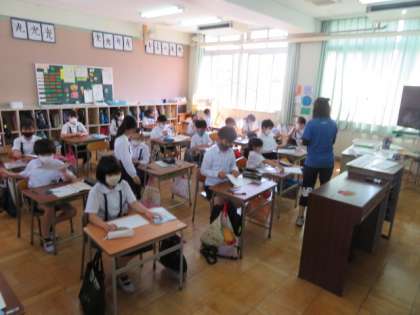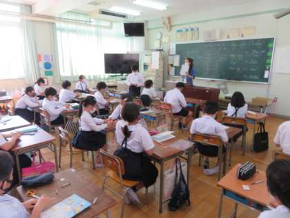 4年生では、英語と理科の学習を担任が交代して指導しています。