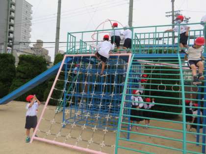 固定のコンビネーション遊具では、安全に気をつけながらいろいろなことにチャレンジしていました。