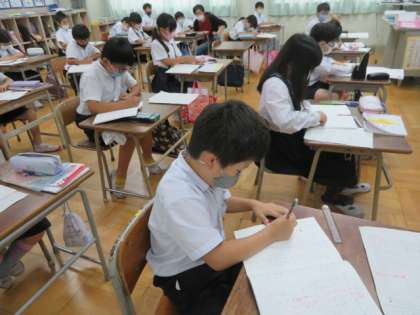 「メモを取りながら話を聞こう」で、自分の考えを書き表すときは、文や言葉で短くまとめるようにすることに気をつけていました。