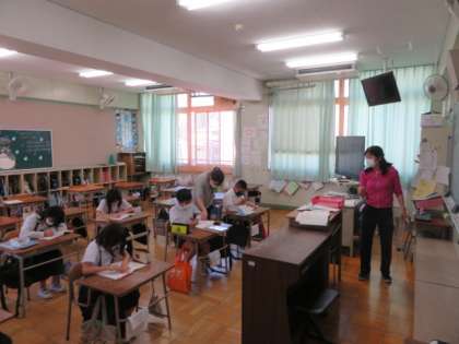 それぞれの教室で、子どもたちは集中力を切らすことなく頑張っていました。