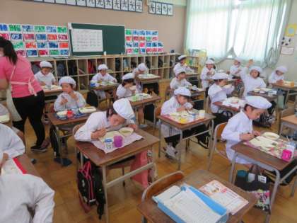 4年2組の子どもたちも、しっかりと給食を食べていました。